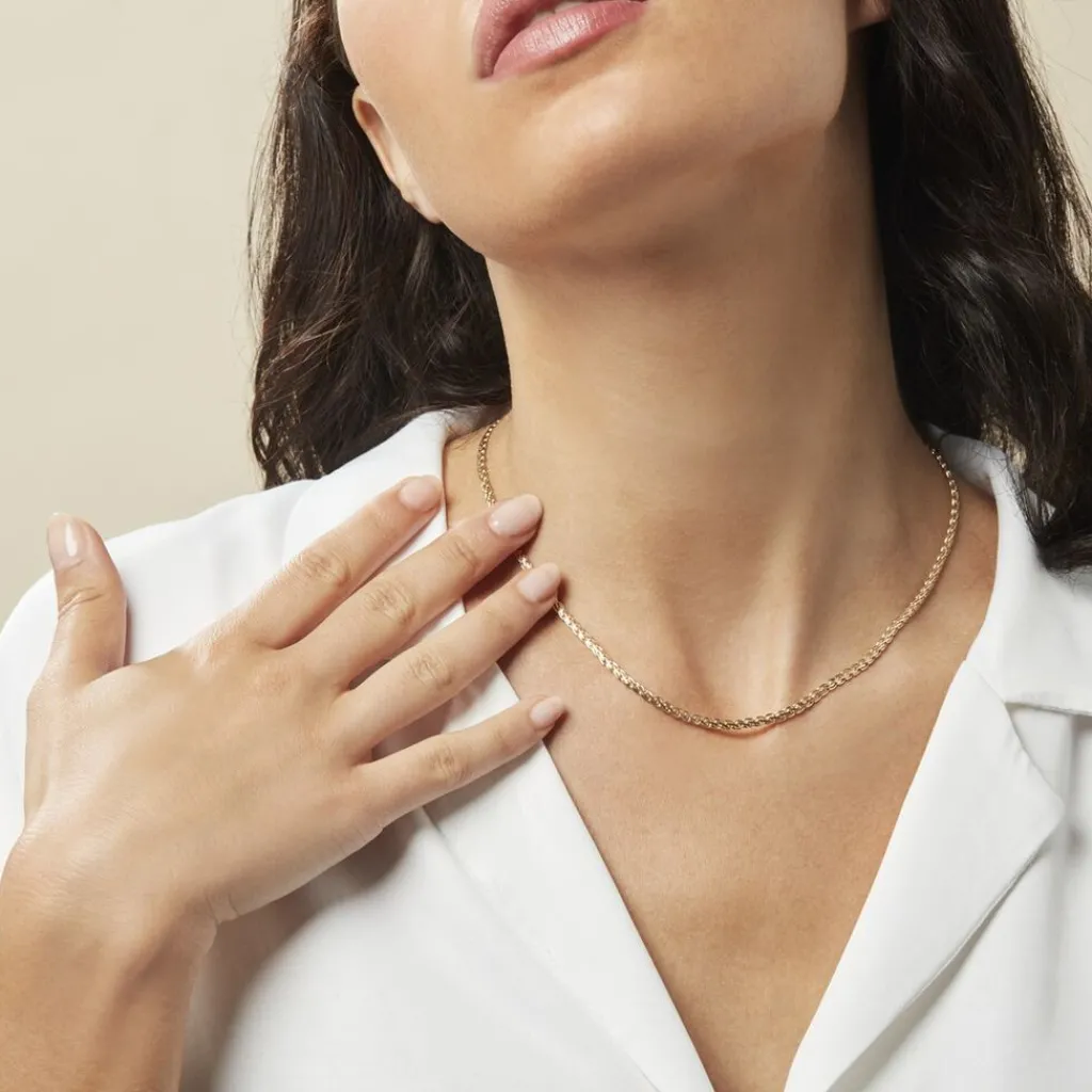 Collier Or Jaune 375/1000 Maille Palmier Ecrase 3mm 50cm