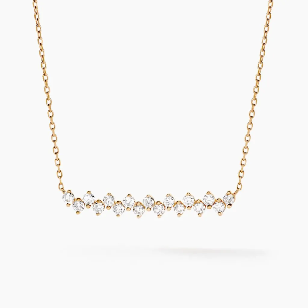 Collier Or Jaune 375/1000 Diamants Synthetiques 0.27cts Sertis Griffes Maille Forcat 40+2cm