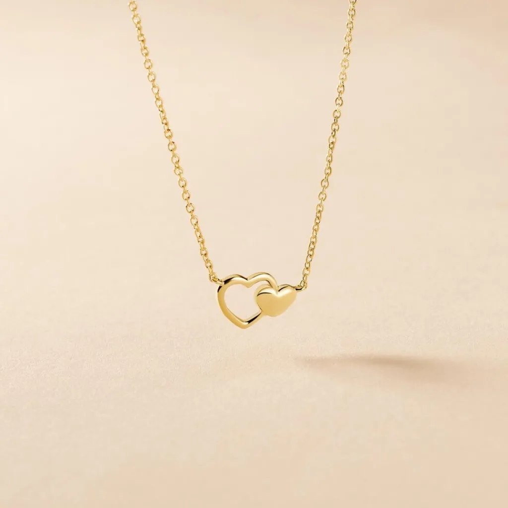Collier Plaqué Or Jaune Coeurs Doubles Maille Forcat 44cm