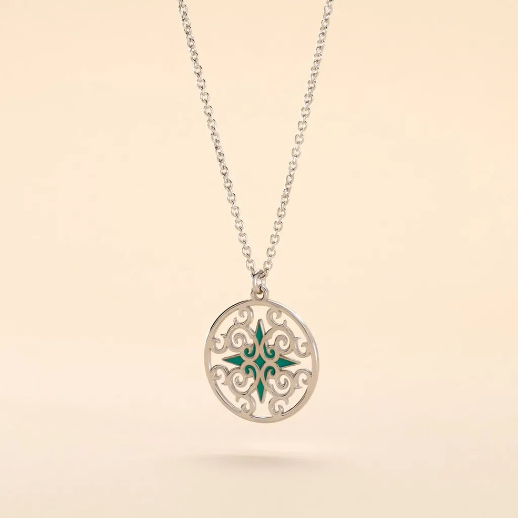Collier Argent 925/1000 Rosace Email Turquoise Maille Forçat 45cm
