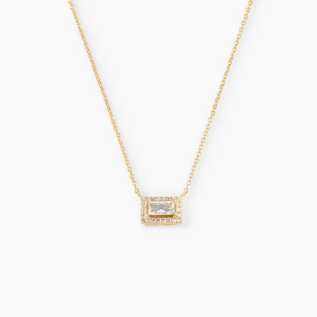 Collier Argent Jaune 925/1000 Forme Rectangle Oxyde De Zirconium Central Et Entourage 45cm