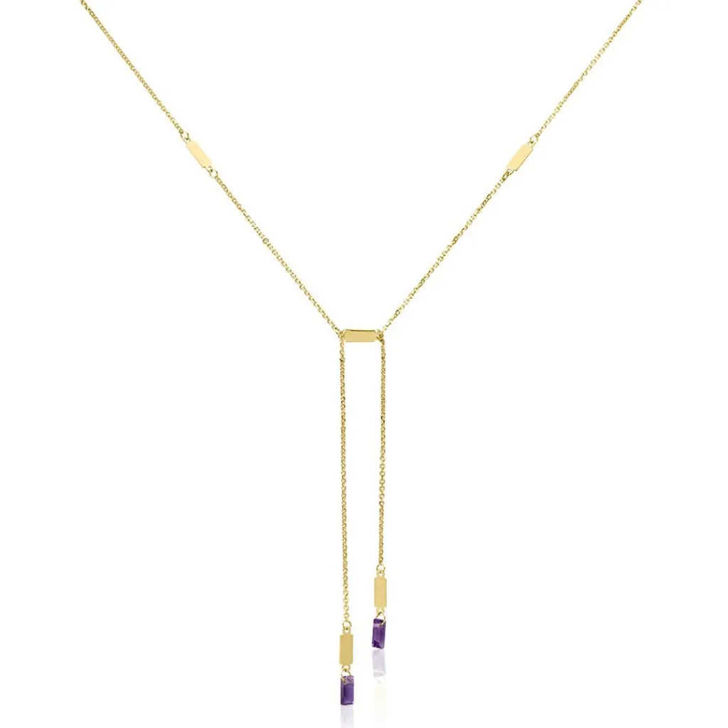Collier Or Jaune 375/1000 Amethyste Violet Maille Forcat 40+2cm