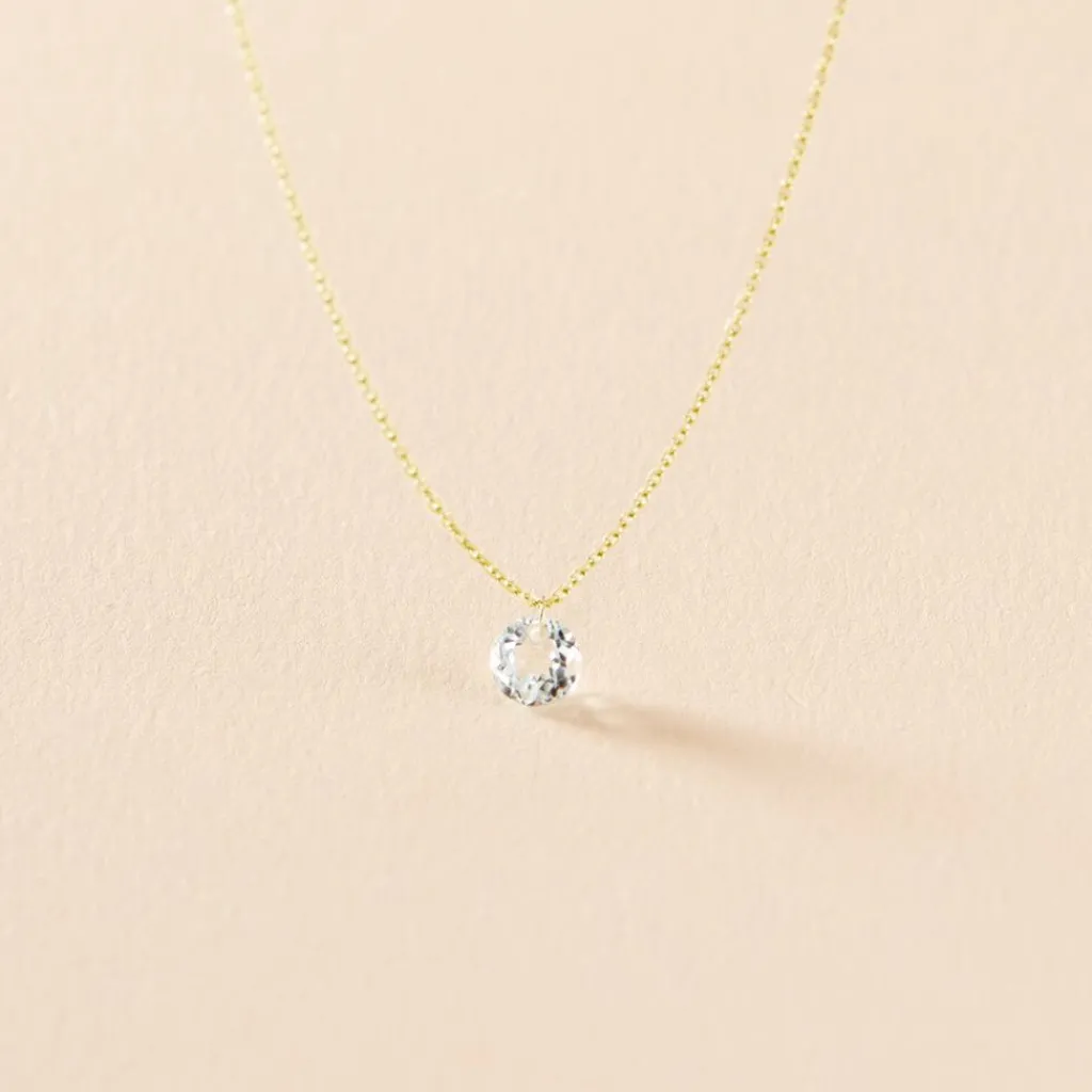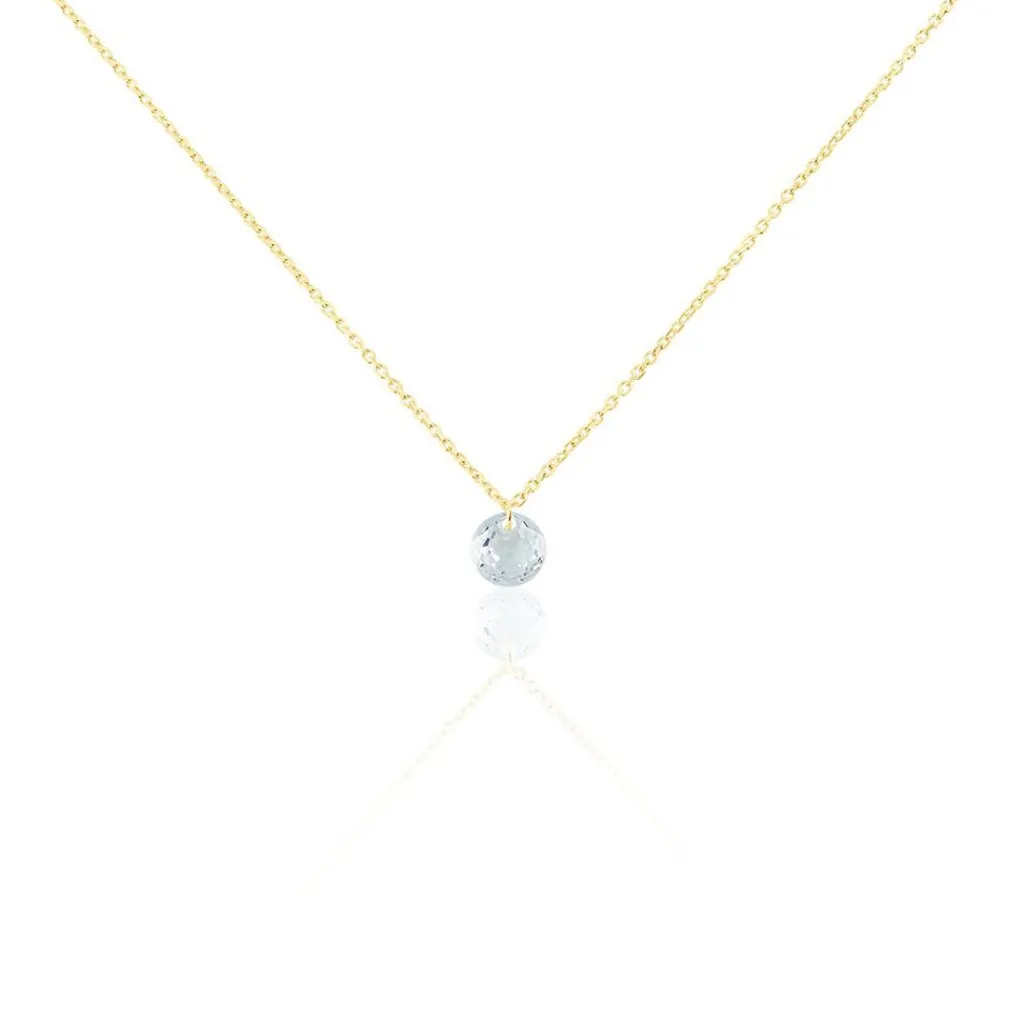 Collier Or Jaune 375/1000 Topaze Azur Ronde Percée 0.65 Cts Maille Forçat 42cm