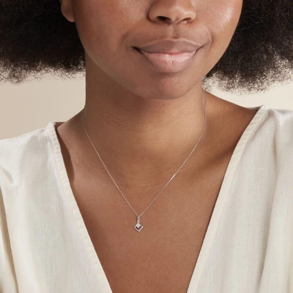 Collier Or Blanc 375/1000 Forme Losange Ajoure + Semi Pavage Diamants 42cm