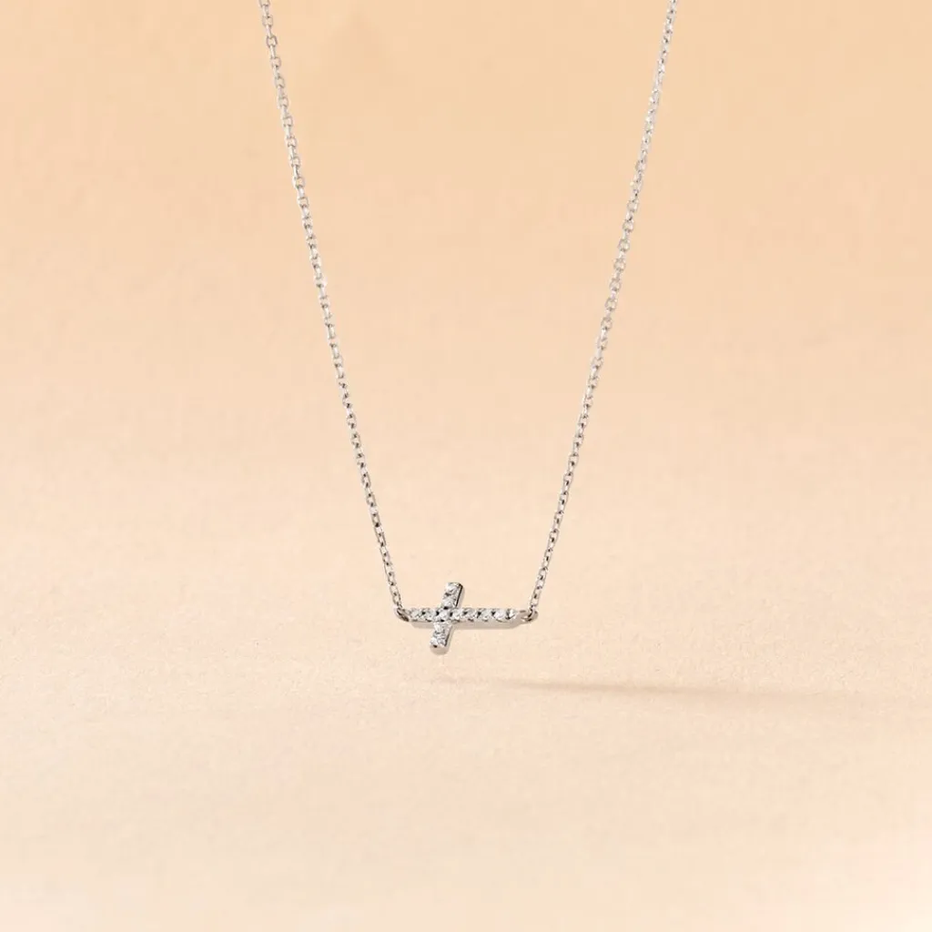 Collier Or Blanc 375/1000 Croix Oxydes De Zirconium Micro Serti Maille Forçat 42cm