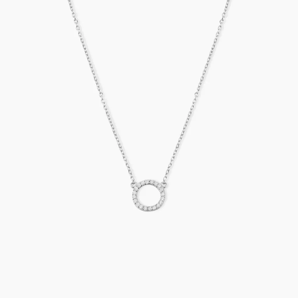 Collier Or Blanc 375/1000 Cercle Creux Pave Oxyde De Zirconium 42cm