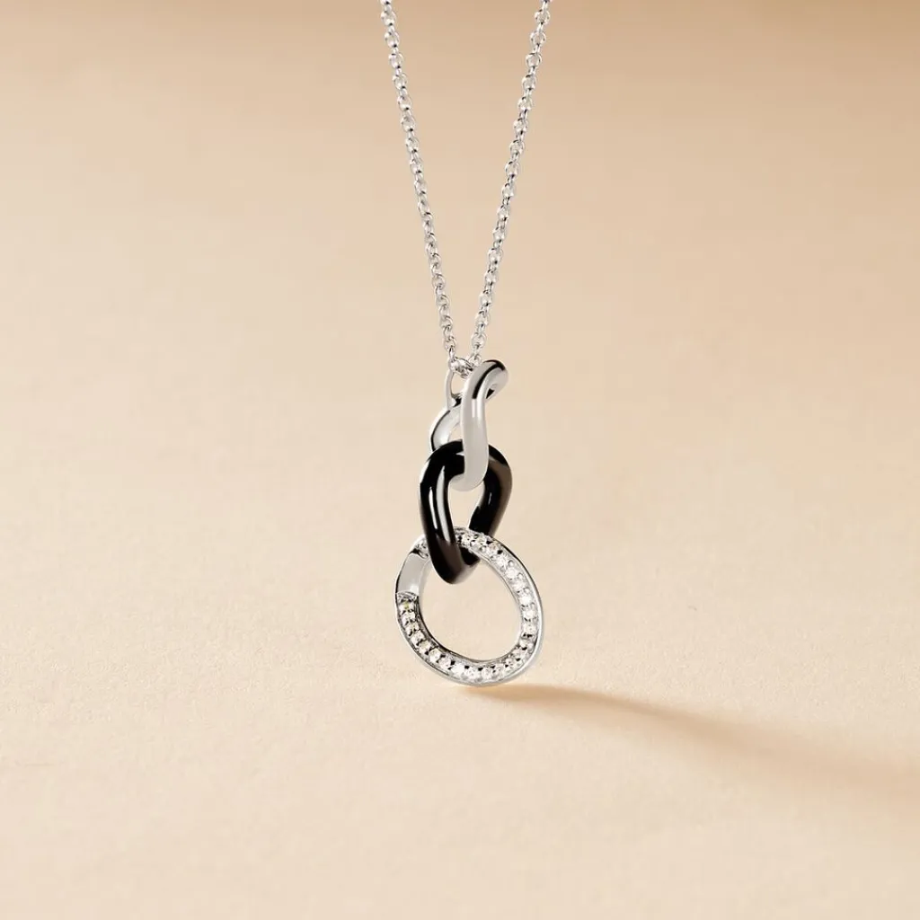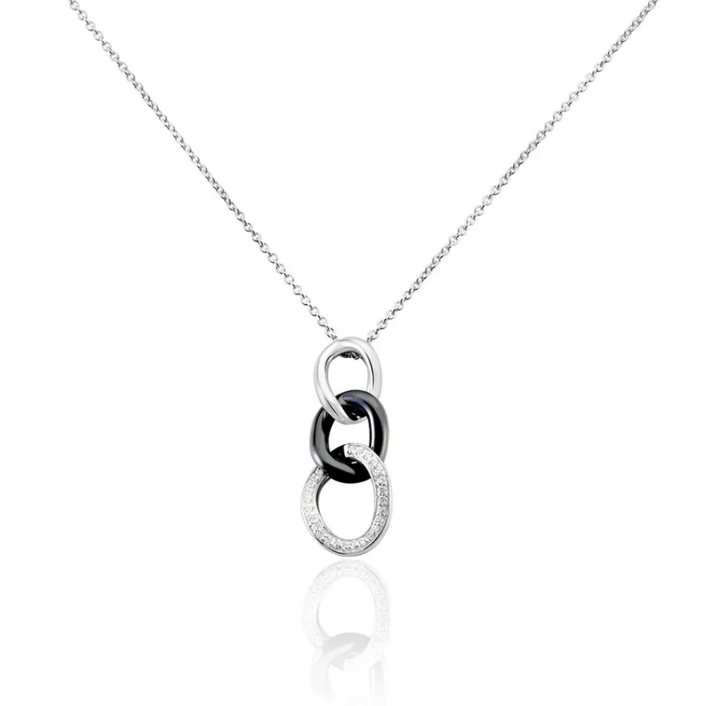 Collier Argent Blanc 925/1000 Ceramique Noire Et Oxydes De Zirconium 45cm