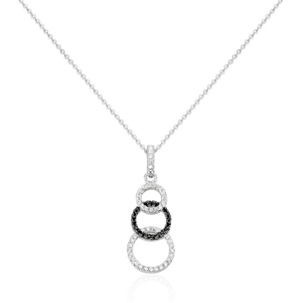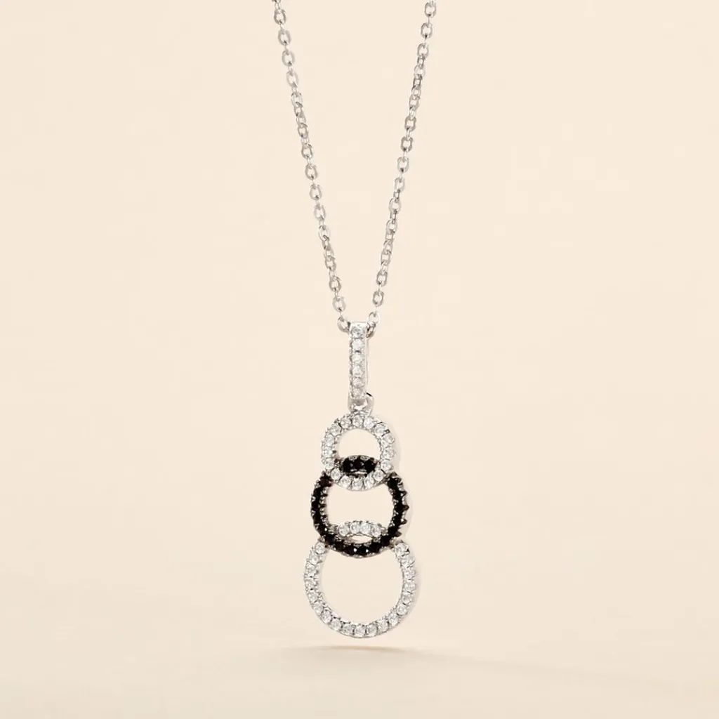 Collier Argent 925/1000 liyana Oxydes De Zirconium Noir Et Blanc Ronds Alternes 42cm