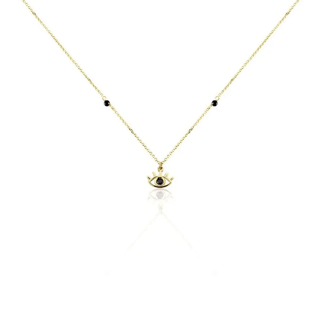 Collier Or Jaune 375/1000 Oeil Oxydes De Zirconium Et Spinelles Noirs Maille Jaseron 40+2cm