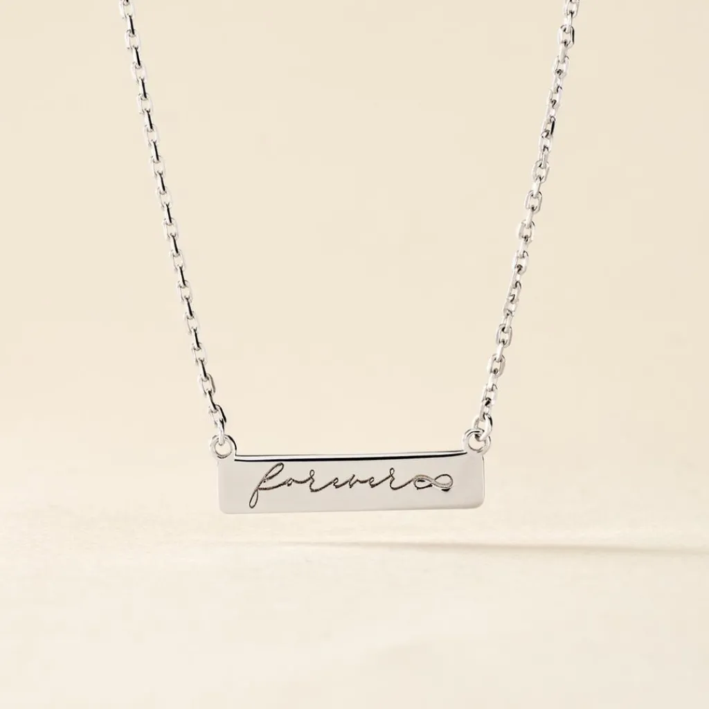 Collier Argent Blanc 925/1000 Plaque Rectangulaire Message Forever Maille Forçat 42+3cm
