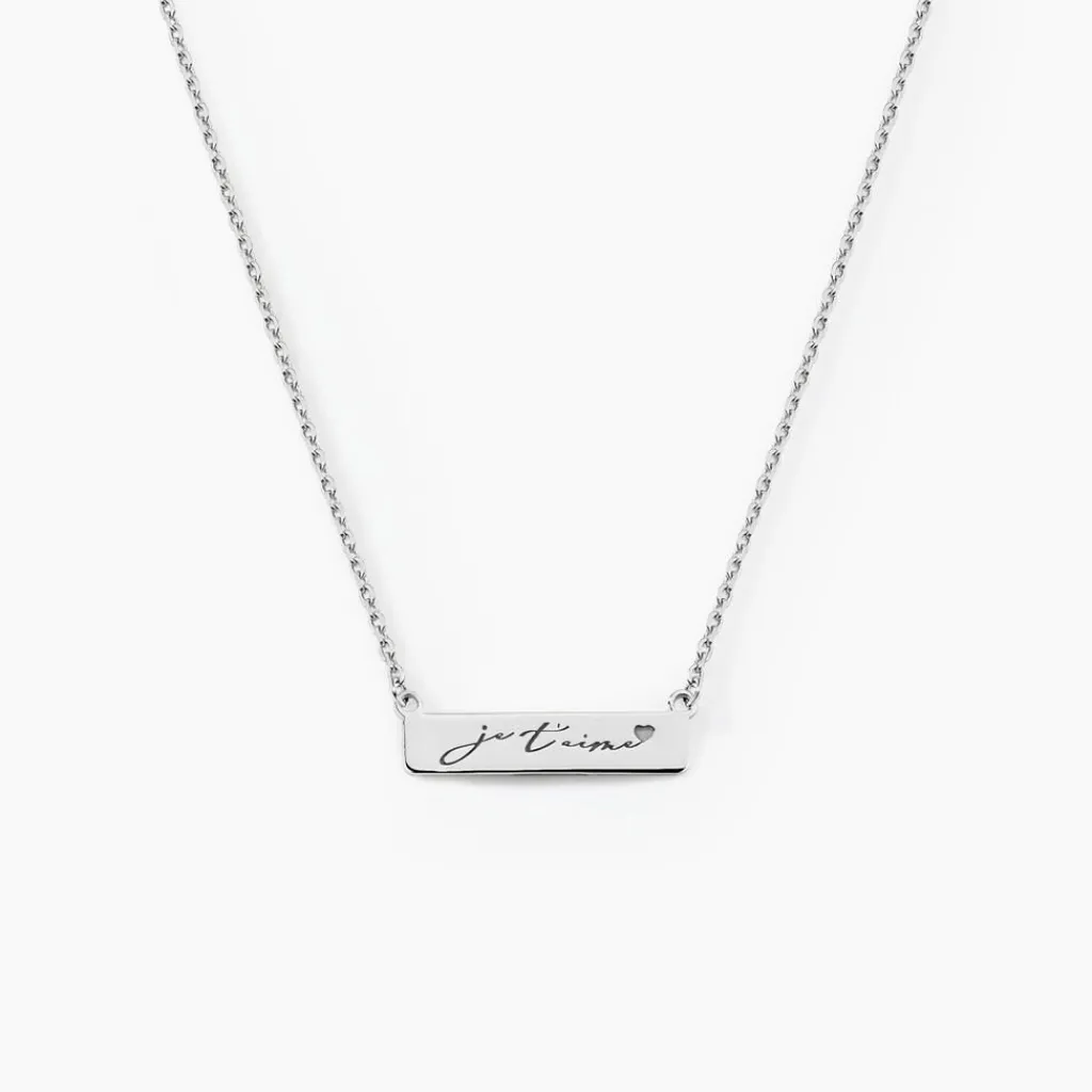 Collier Argent Blanc 925/1000 Plaque Rectangulaire Message Je T’aime Maille Forçat 42+3cm