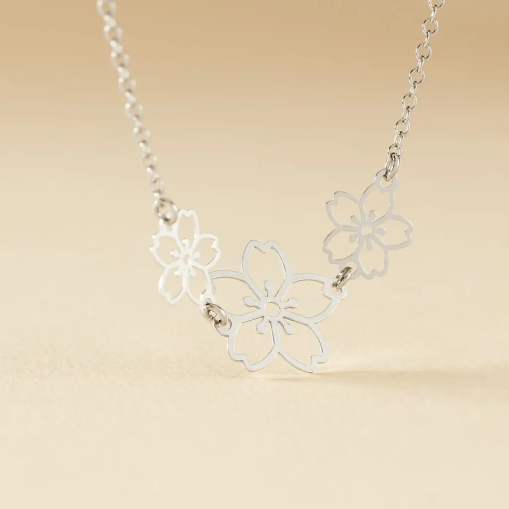 Collier Argent Blanc 925/1000 Triple Fleurs Maille Forcat 45cm