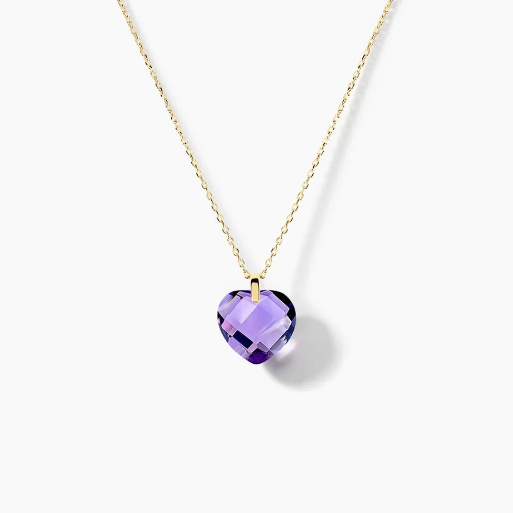 Collier Or Jaune 375/1000 Forme C艙ur Améthyste 43cm