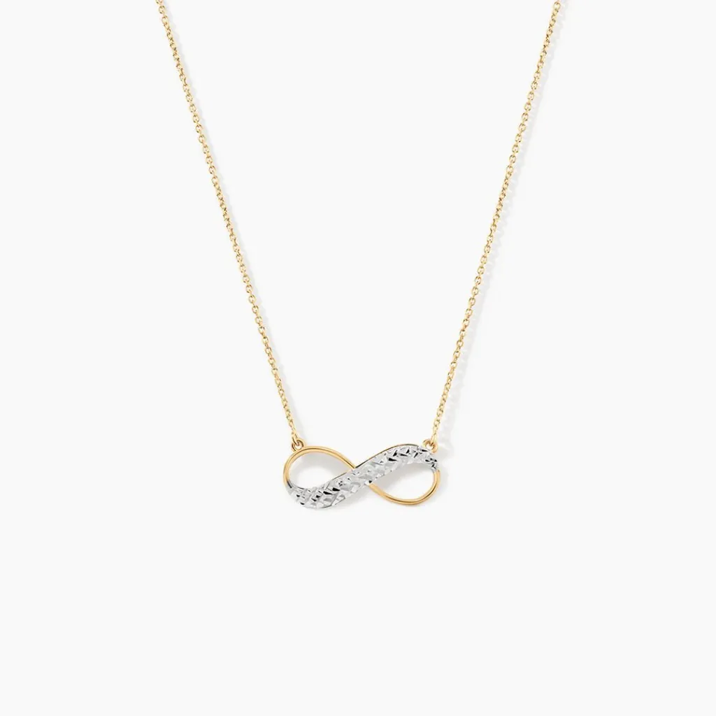 Collier Or Jaune 375/1000 Motif Infini Effet Diamante Maille Jaseron 42cm