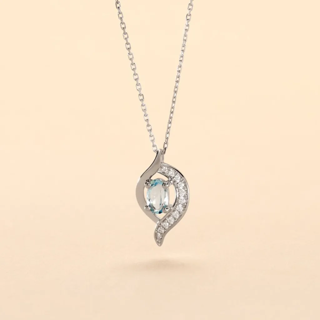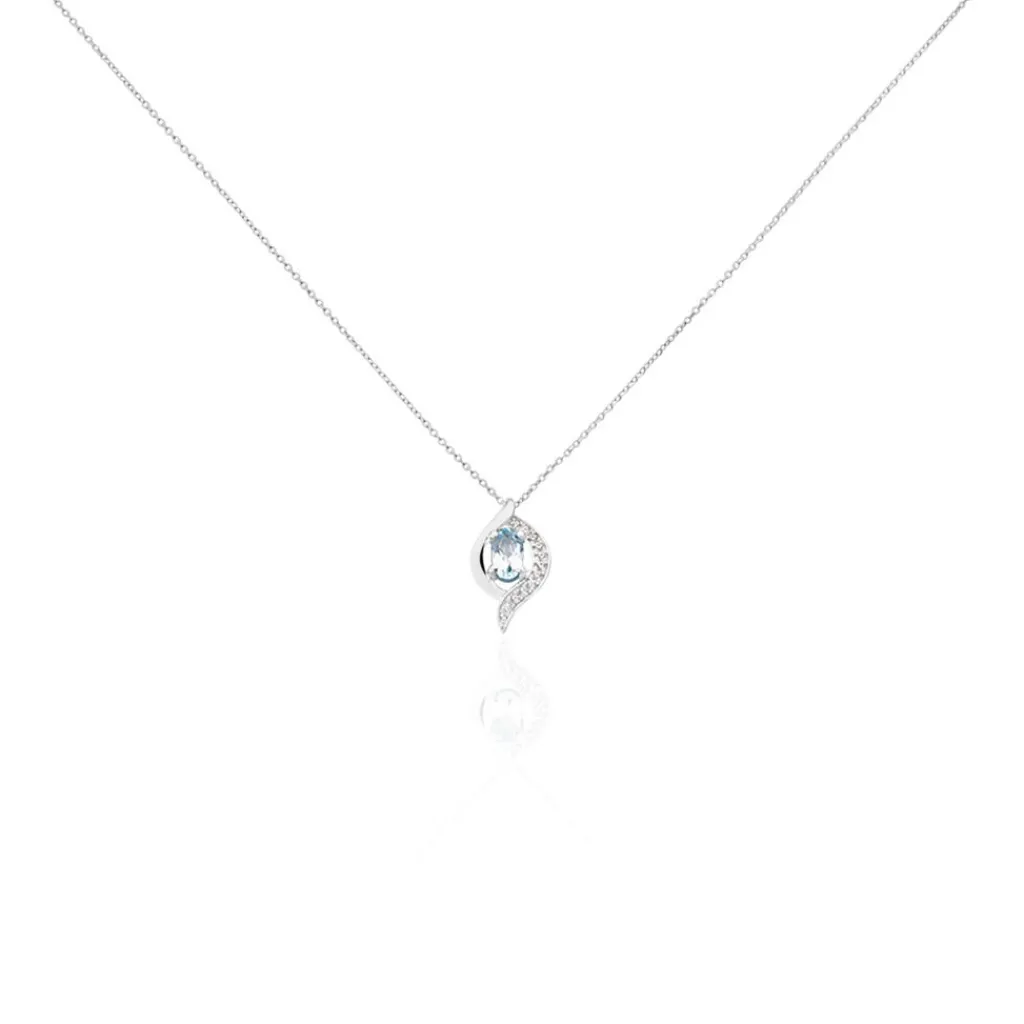 Collier Or Blanc 375/1000 Forme Vrillée Topaze Et Oxydes De Zirconium Maille Forçat 38+4cm
