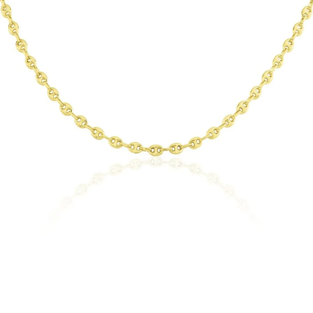 Collier Or Jaune 375/1000 Maille Grain De Café Largeur 3.8mm 45cm