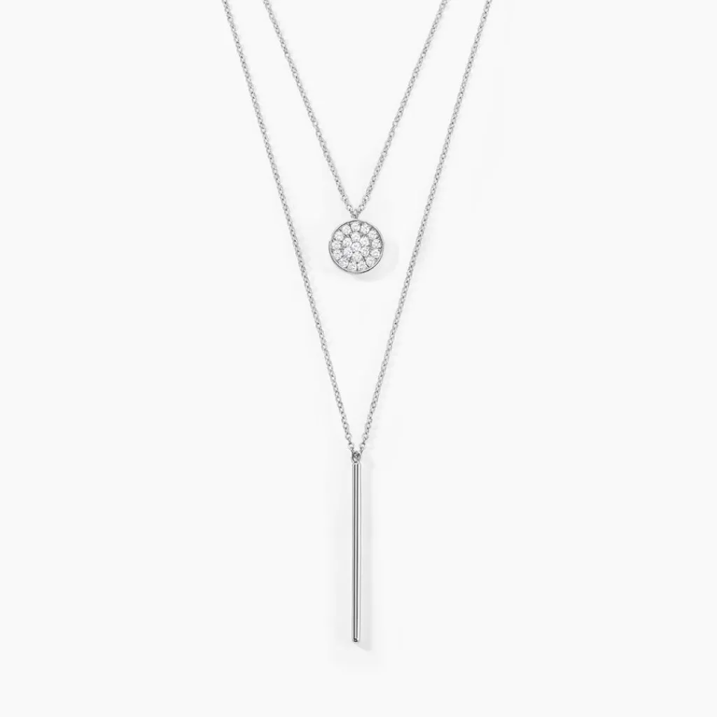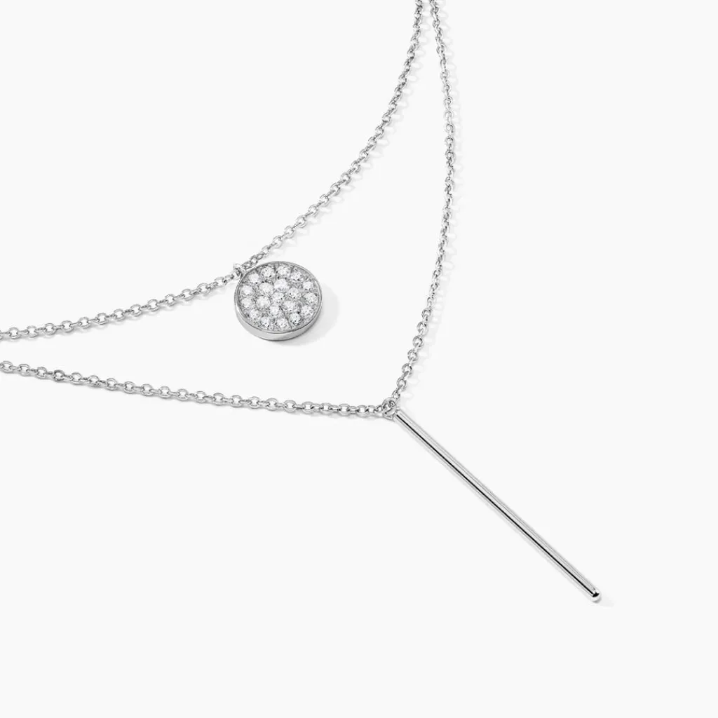 Collier Argent 925/1000 manna Double Chaines Cercle Pavage Oxydes De Zirconium Et Barrette45cm