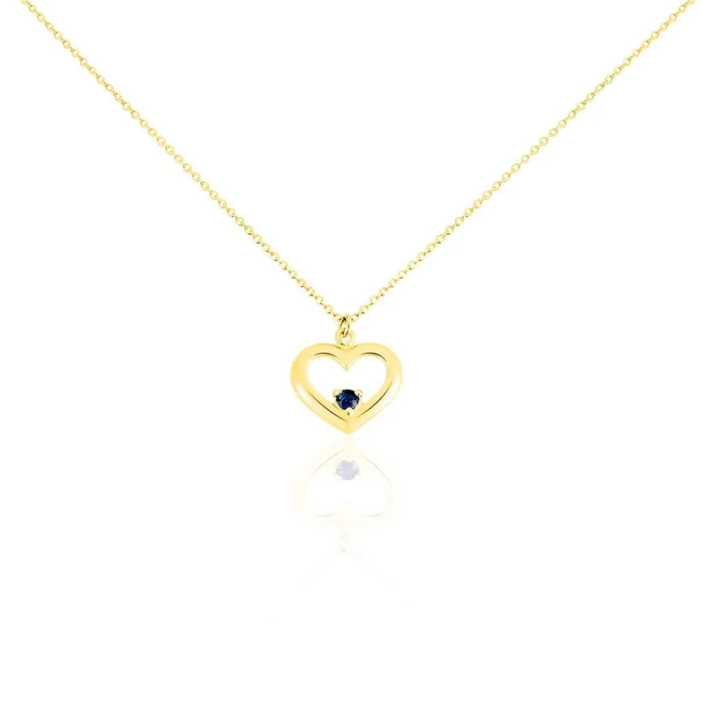 Collier Or Jaune 375/1000 C艙ur Et Saphir 42cm