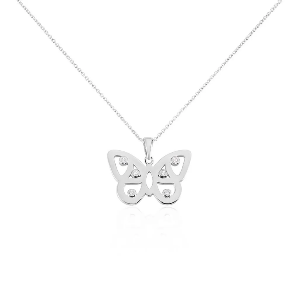 Collier Argent 925/1000 Papillon Maille Forçat Sertis Clos Oxydes De Zirconium 50cm