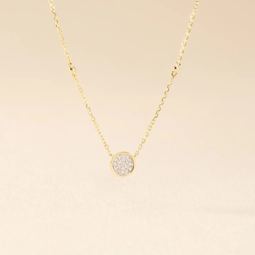 Collier Or Jaune 375/1000 Forme Cercle Pavage Diamants Maille Forçat Motif Boule 42cm