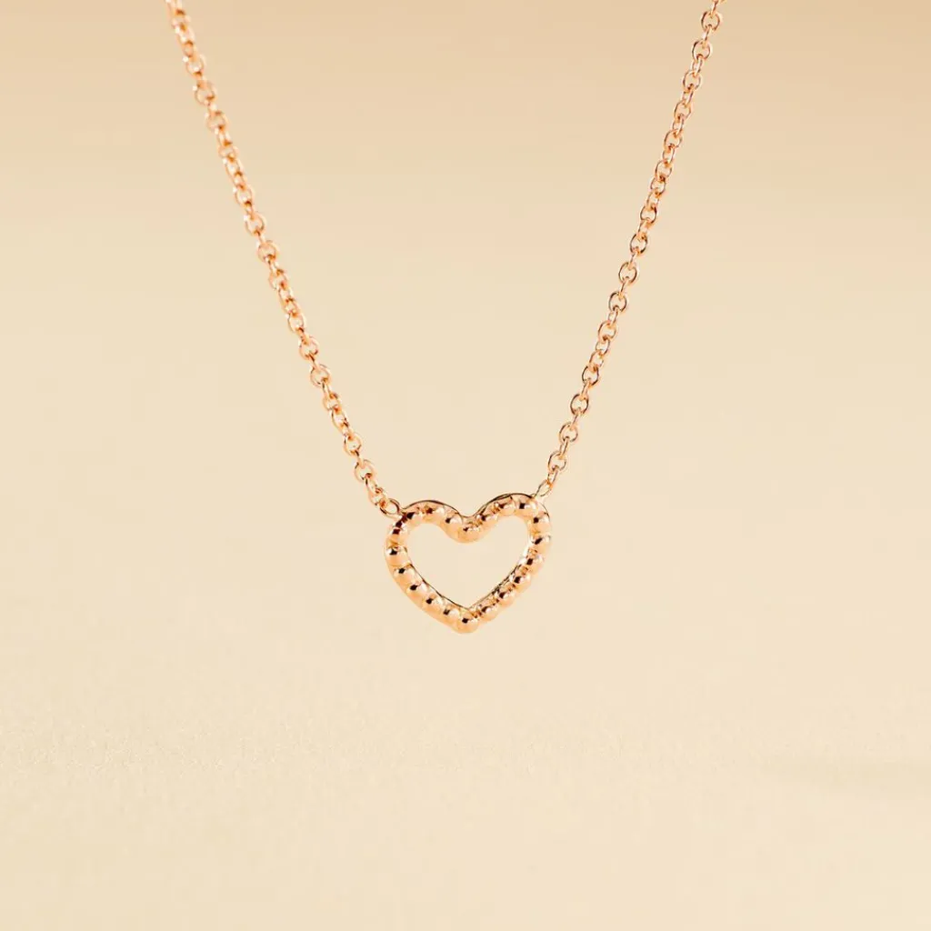 Collier Argent Rose 925/1000 C艙ur Effet Perle Maille Forcat 42cm