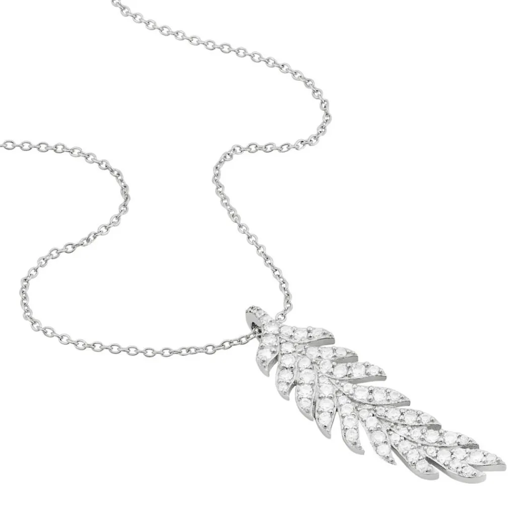 Collier Argent Blanc 925/1000 Feuille Oxydes De Zirconium 45cm