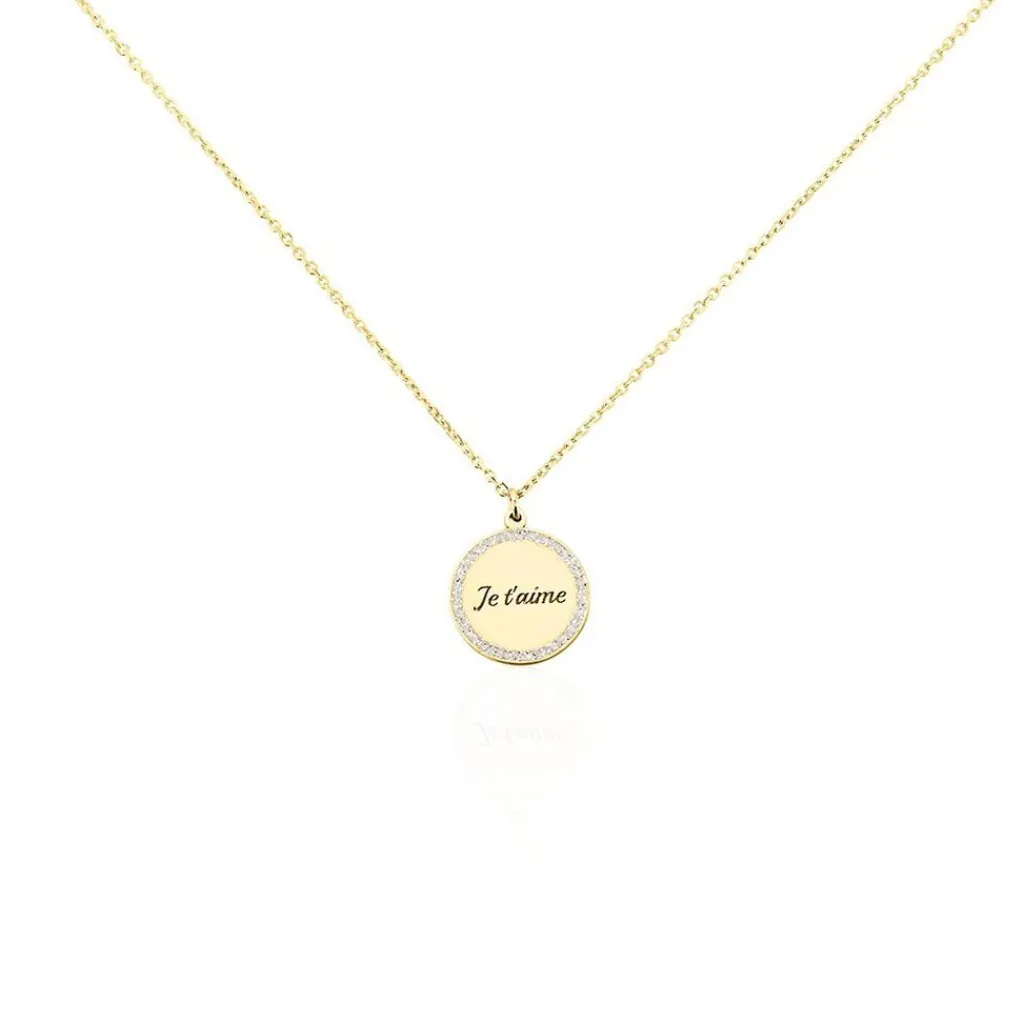 Collier Or Jaune 375/1000 Pastille Message Je T’aime Entourage Glitter Maille Jaseron 40+2cm