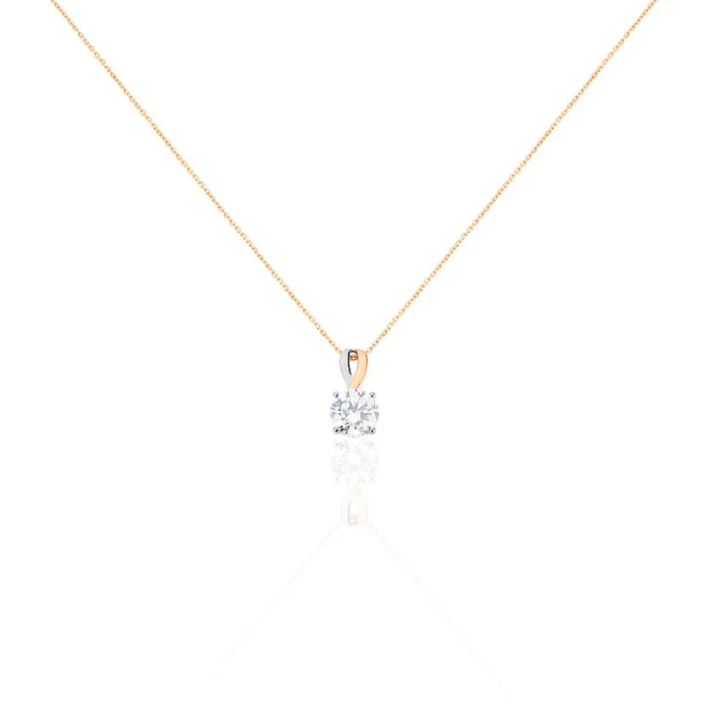 Collier Or Bicolore Blanc Et Rose 375/1000 Oxyde De Zirconium Central 6.5mm 42cm