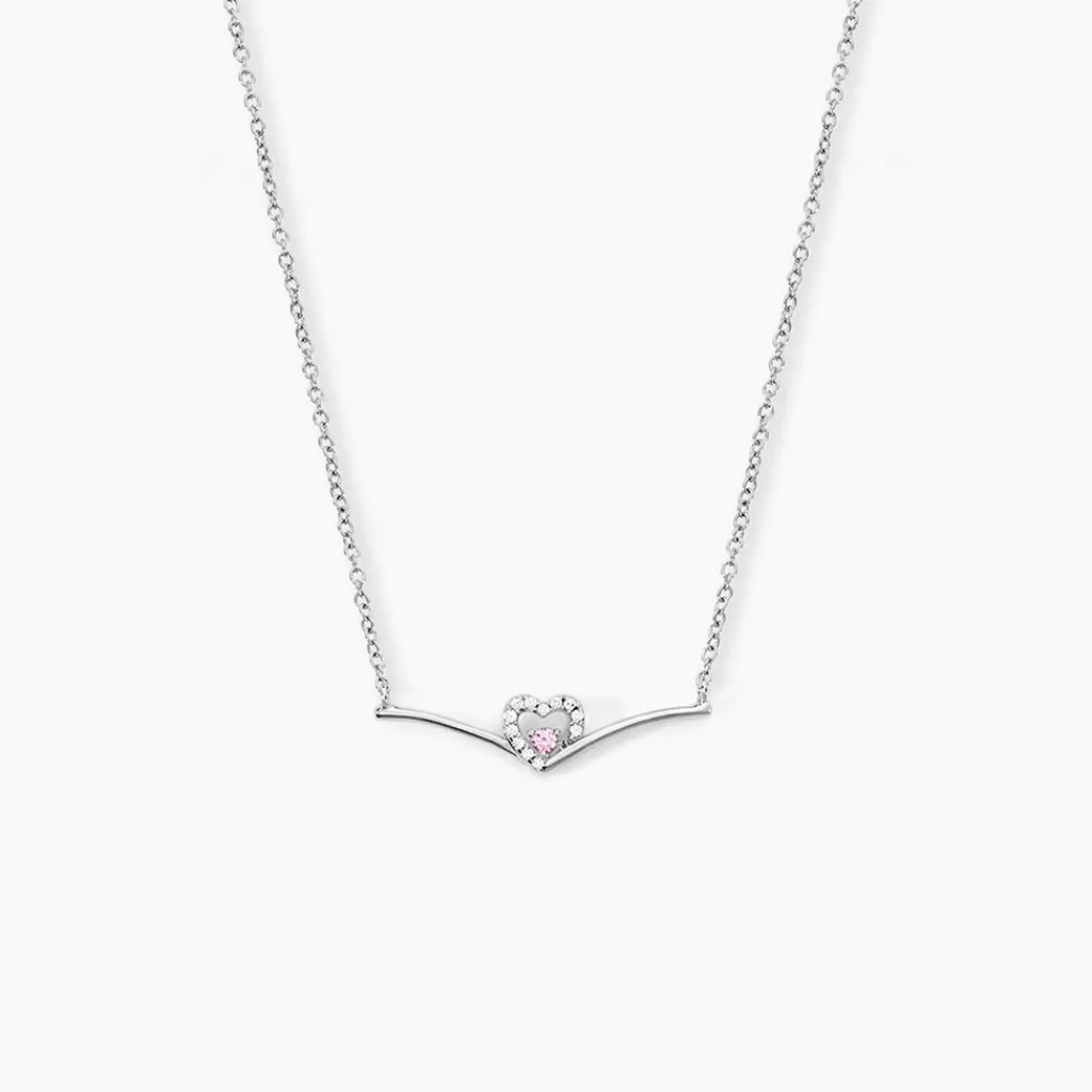 Collier Argent Blanc 925/1000 Aile De Mouette Et C艙ur Oxyde De Zirconium Rose Maille Forçat 42+3cm