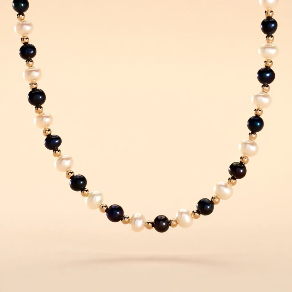 Collier Or Jaune 375/1000 Perles De Culture 4.5/5mm Semi-baroques + Boules Or 42cm