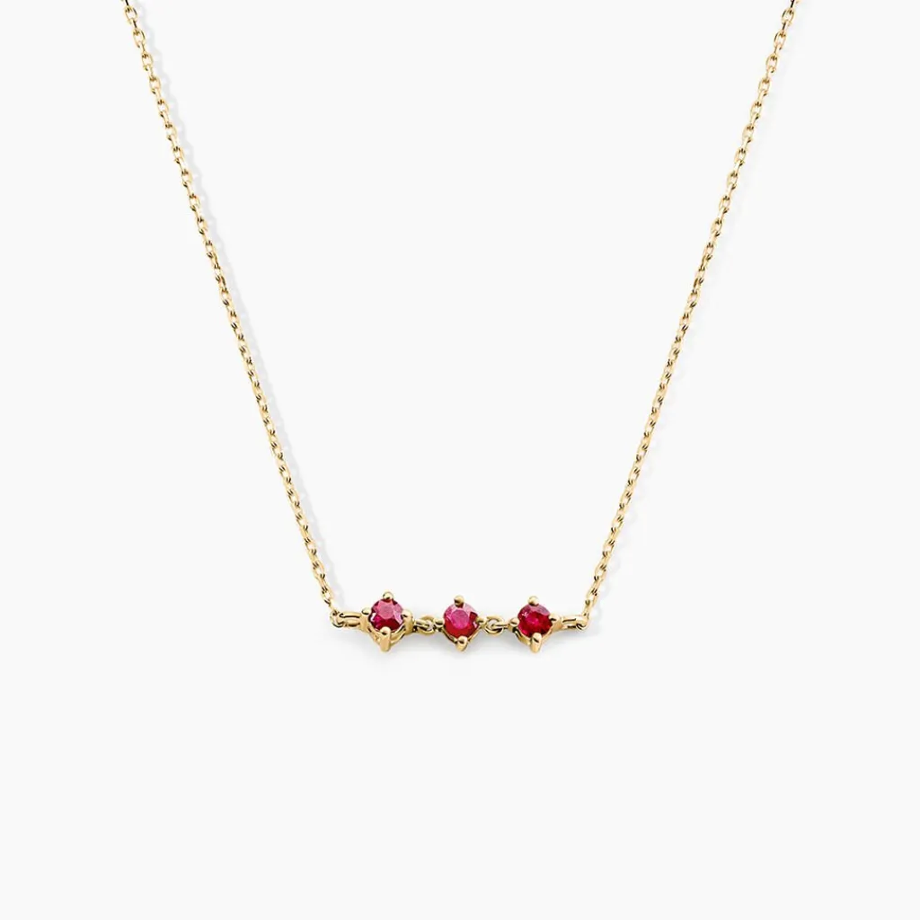 Collier Or Jaune 375/1000 Trilogie Rubis Ronds 0,13Cts Sertis Griffes Maille Forcat 42+3Cm