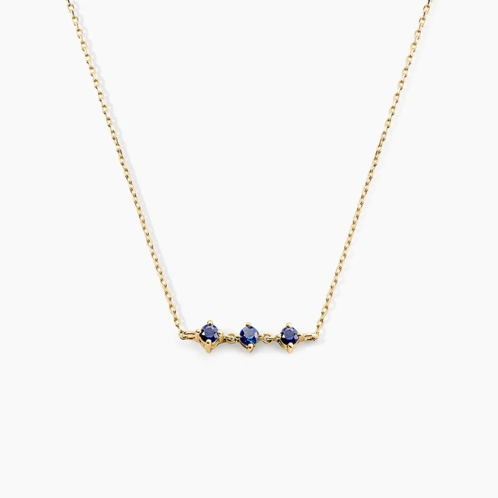 Collier Or Jaune 375/1000 Trilogie Saphir Ronds 0,13Cts Sertis Griffes Maille Forcat 42+3Cm