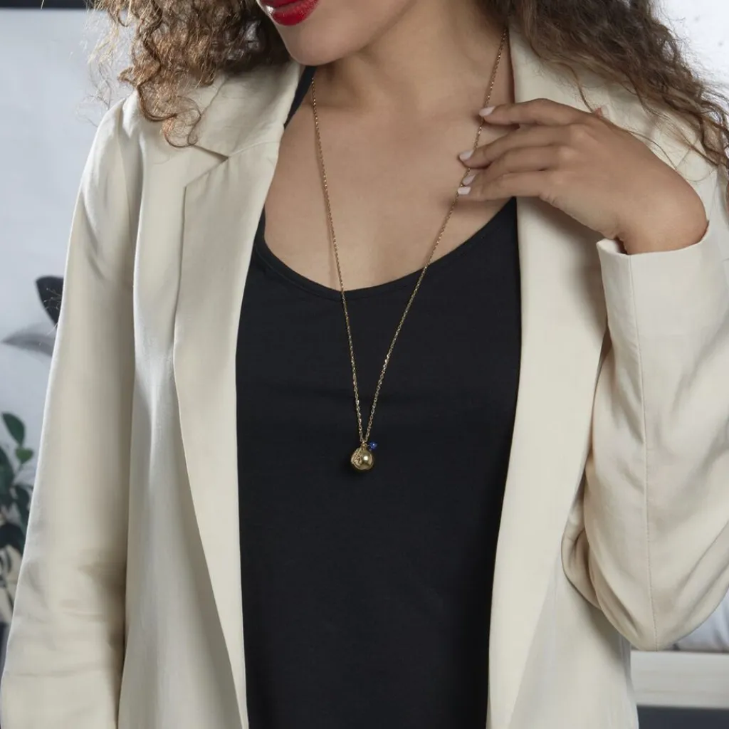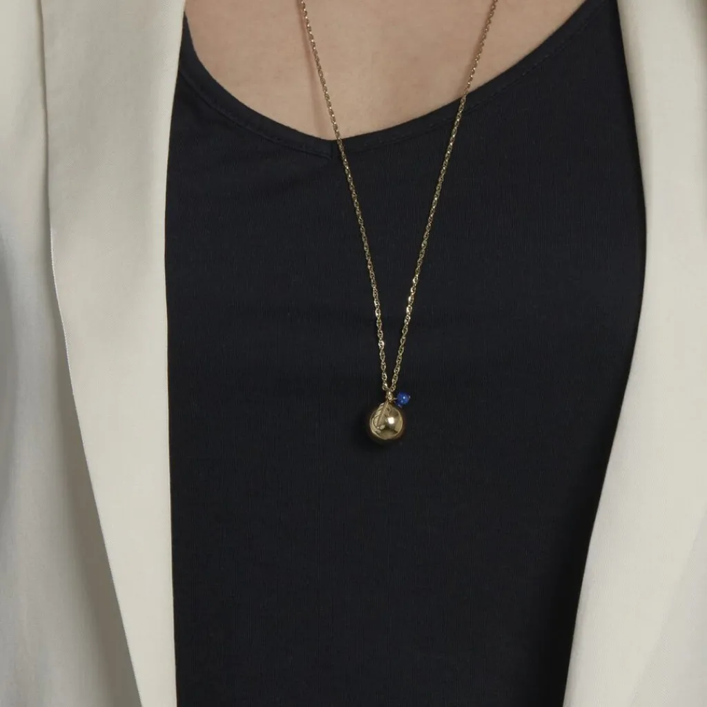 Bola De Grossesse Acier Inoxydable Jaune Feuille Et Aventurine Bleue Maille Corde 115cm