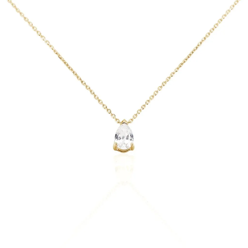 Collier Plaque Or Jaune 1 Oxyde De Zirconium Poire Serti 3 Griffes 45cm