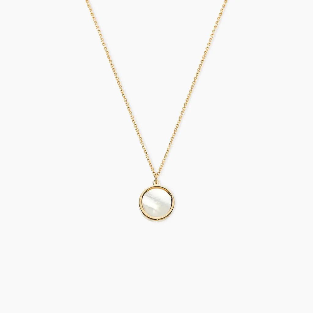Collier Or Jaune 375/1000 Cercle Ajoure Et Nacre Maille Jaseron 40+2cm