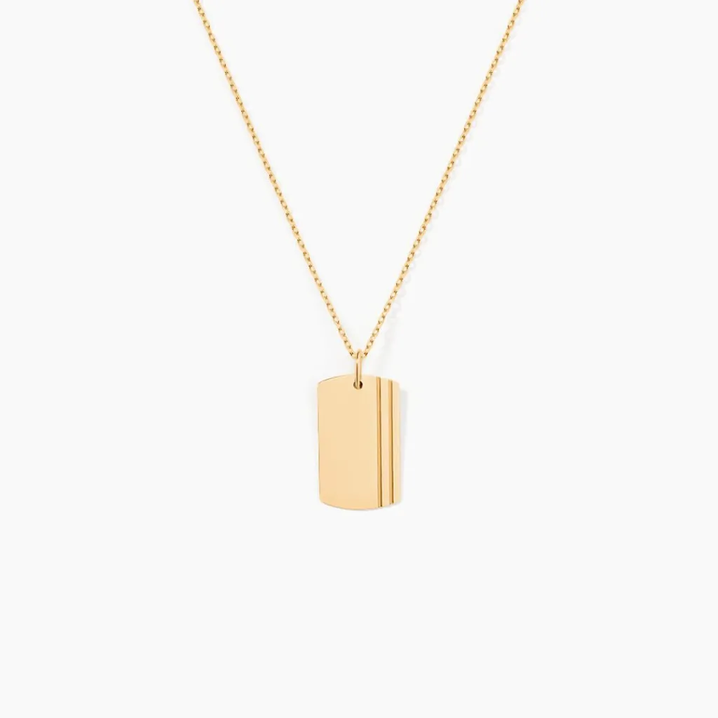 Collier Or Jaune 375/1000 Plaque Rectangle Gravable Avec Liserets Maille Forcat 47+3cm