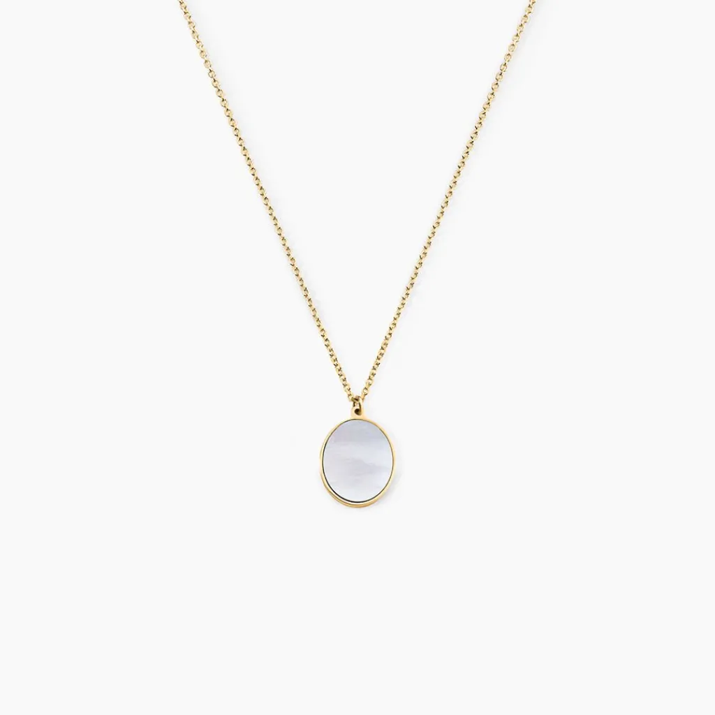 Collier Or Jaune 375/1000 Ovale Nacre Maille Jaseron 40+2Cm