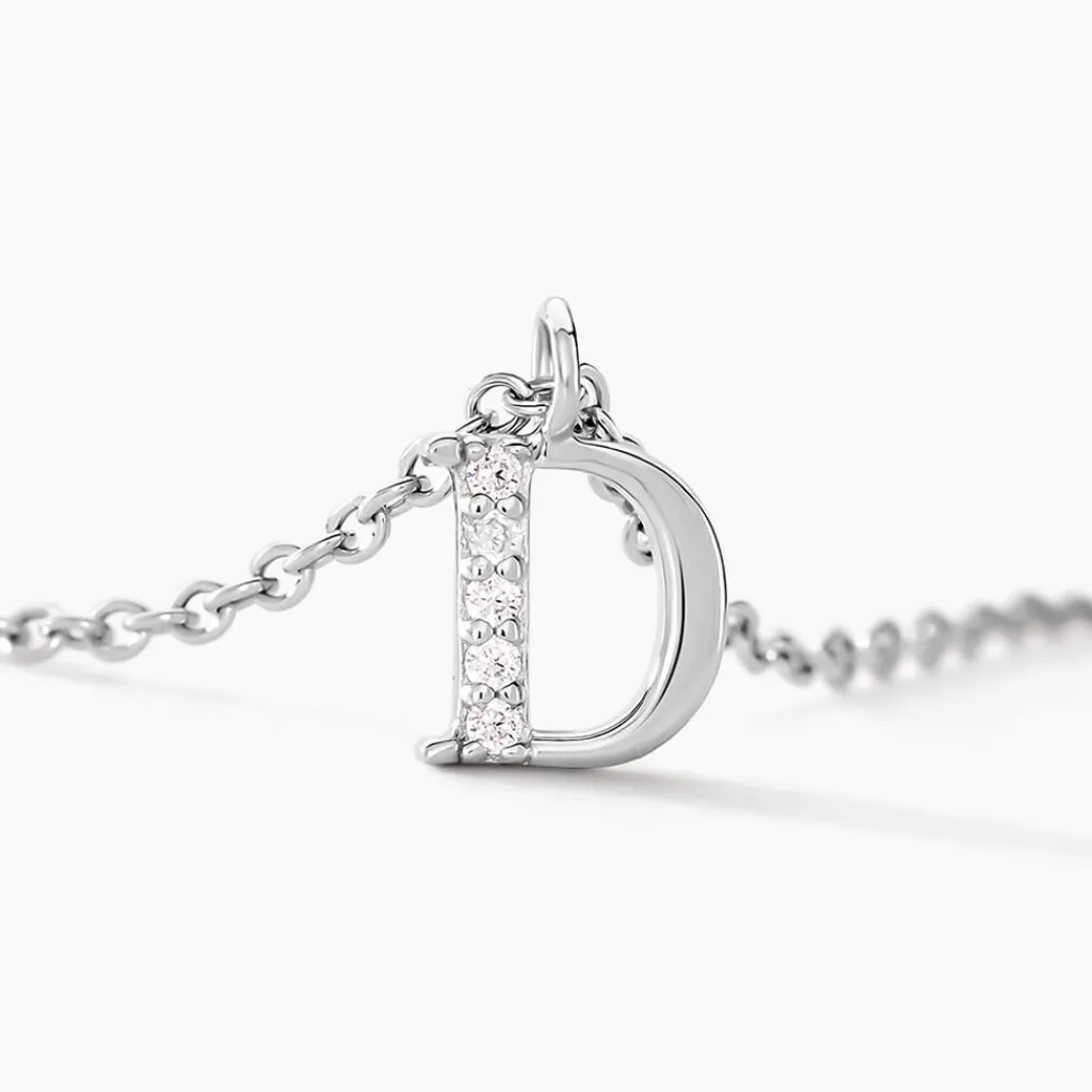 Collier Argent Blanc 925/1000 Lettre D Semi Pavage Oxydes De Zirconium Maille Forçat 38+3cm