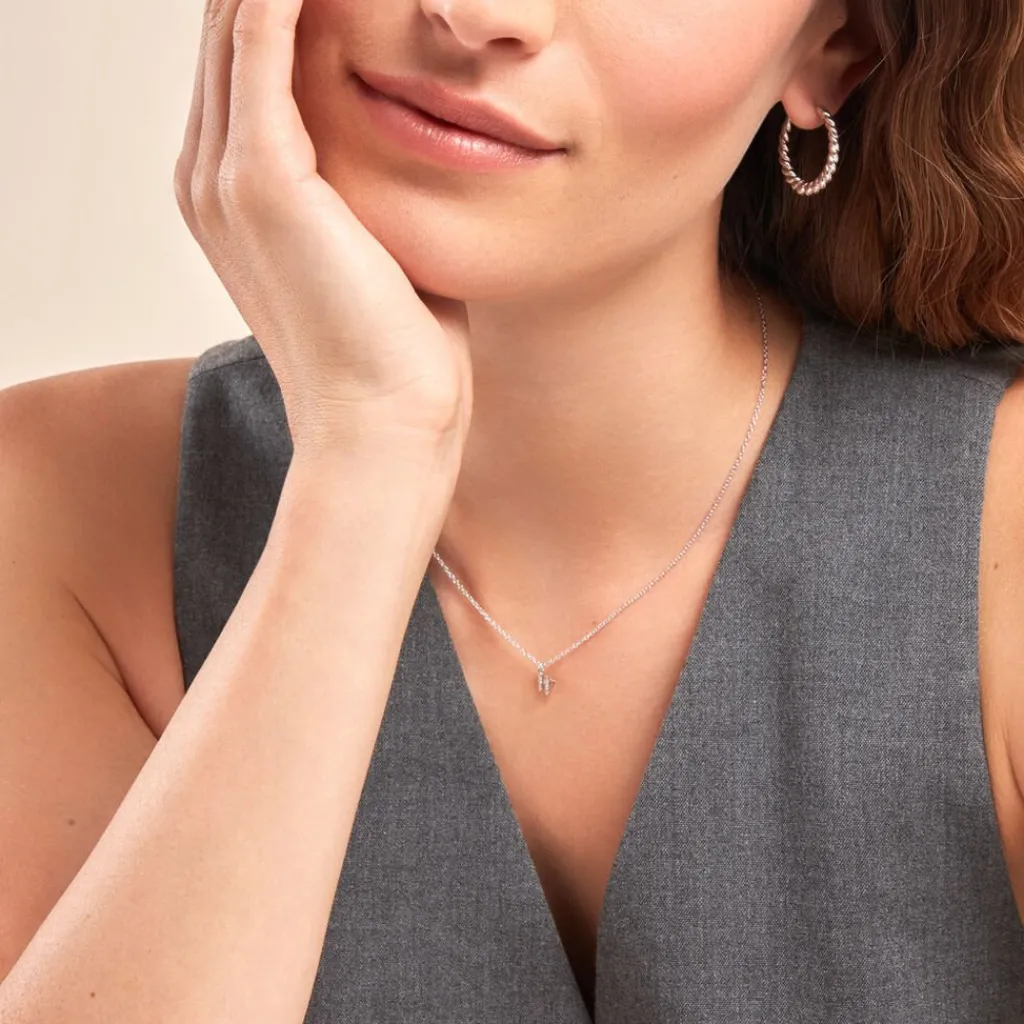 Collier Argent Blanc 925/1000 Lettre W Semi Pavage Oxydes De Zirconium Maille Forçat 38+3cm