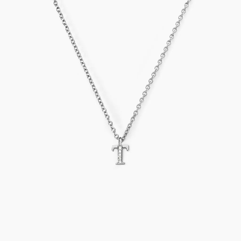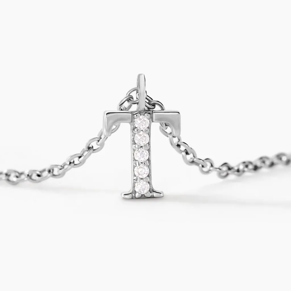 Collier Argent Blanc 925/1000 Lettre T Semi Pavage Oxydes De Zirconium Maille Forçat 38+3cm