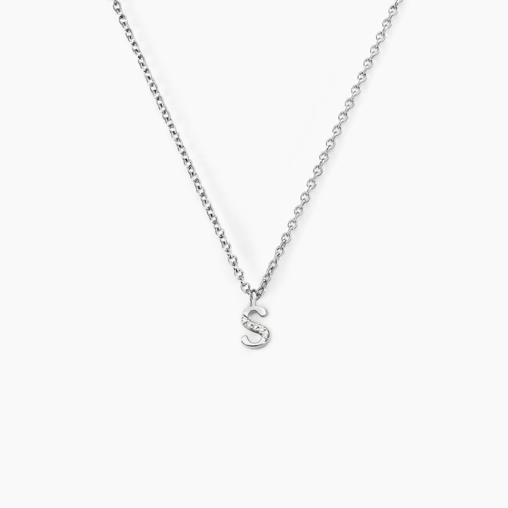 Collier Argent Blanc 925/1000 Lettre S Semi Pavage Oxydes De Zirconium Maille Forçat 38+3cm