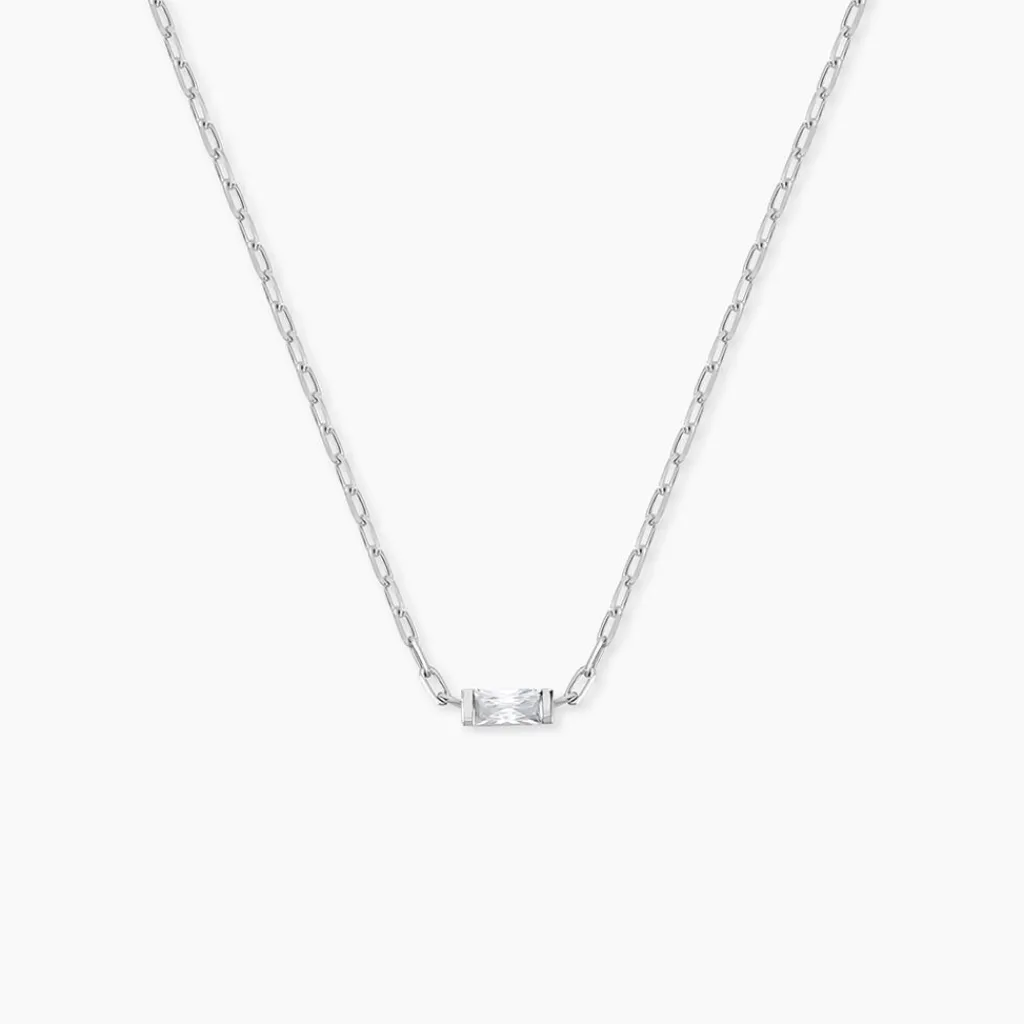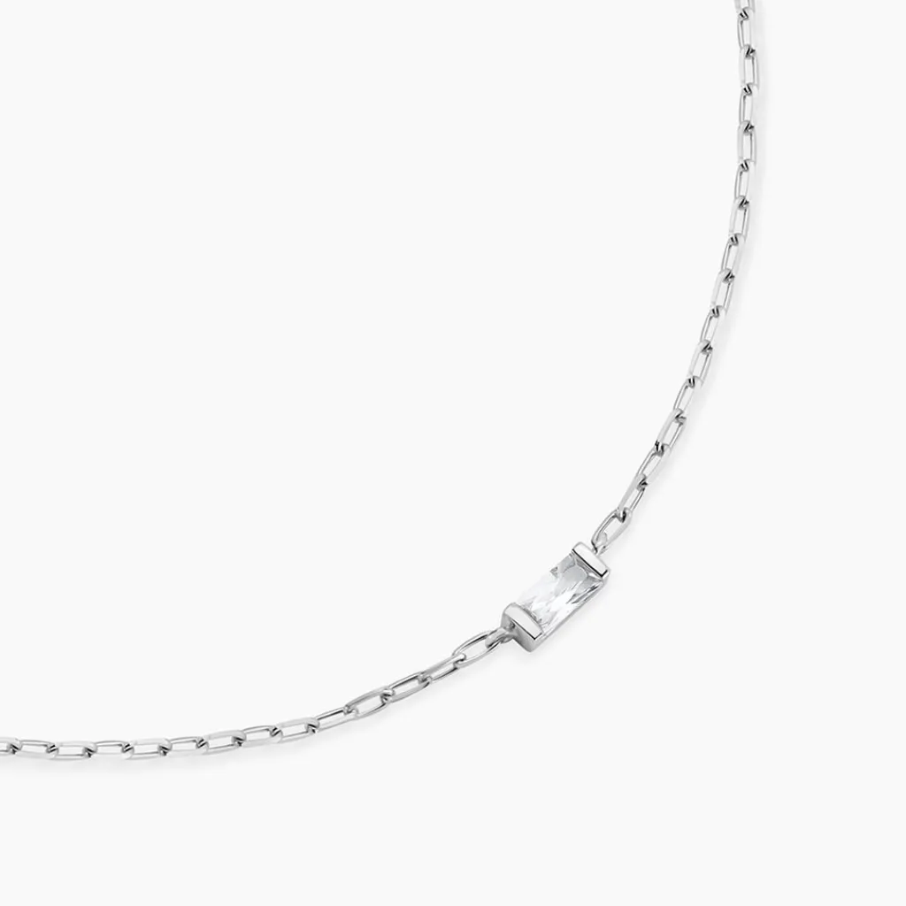 Collier Argent Blanc 925/1000 Oxyde De Zirconium Taille Baguette Maille Cheval Largeur 1.7mm 42+3cm