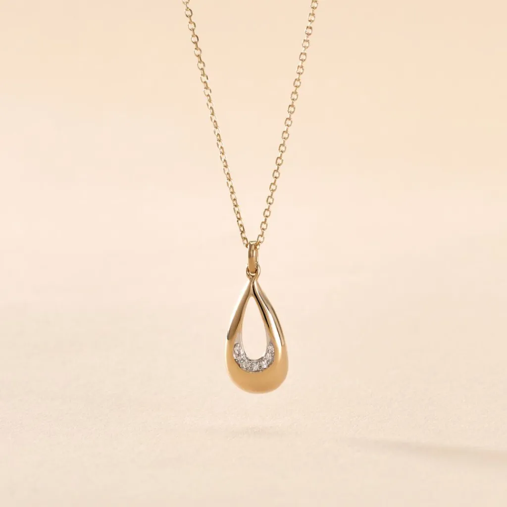 Collier Or Jaune 375/1000 Forme Goutte Pavage Diamants 42cm
