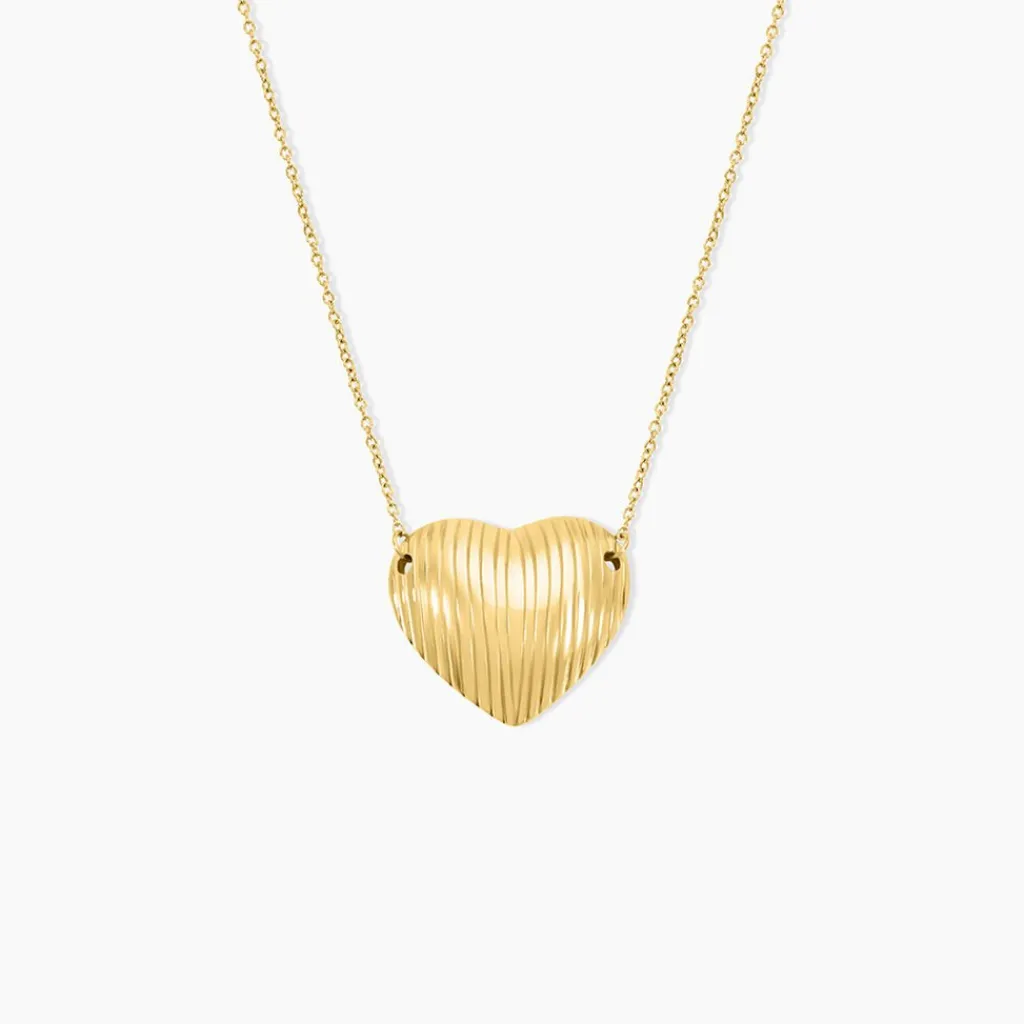 Collier Acier Jaune C艙ur Strié Maille Forcat Largeur 1.2mm 45cm