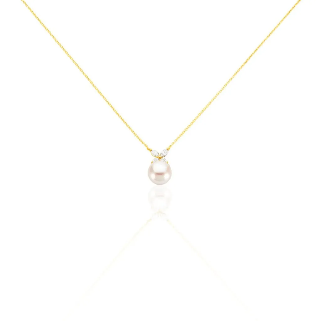 Collier Or Jaune 375/1000 Fleur Oxydes De Zirconium Perle De Culture 8mm 43cm