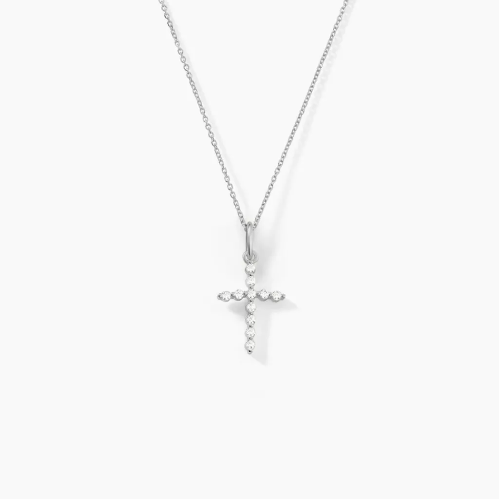 Collier Argent 925/1000 norine Avec Pendentif Croix Oxydes De Zirconium Maille Forcat 42cm