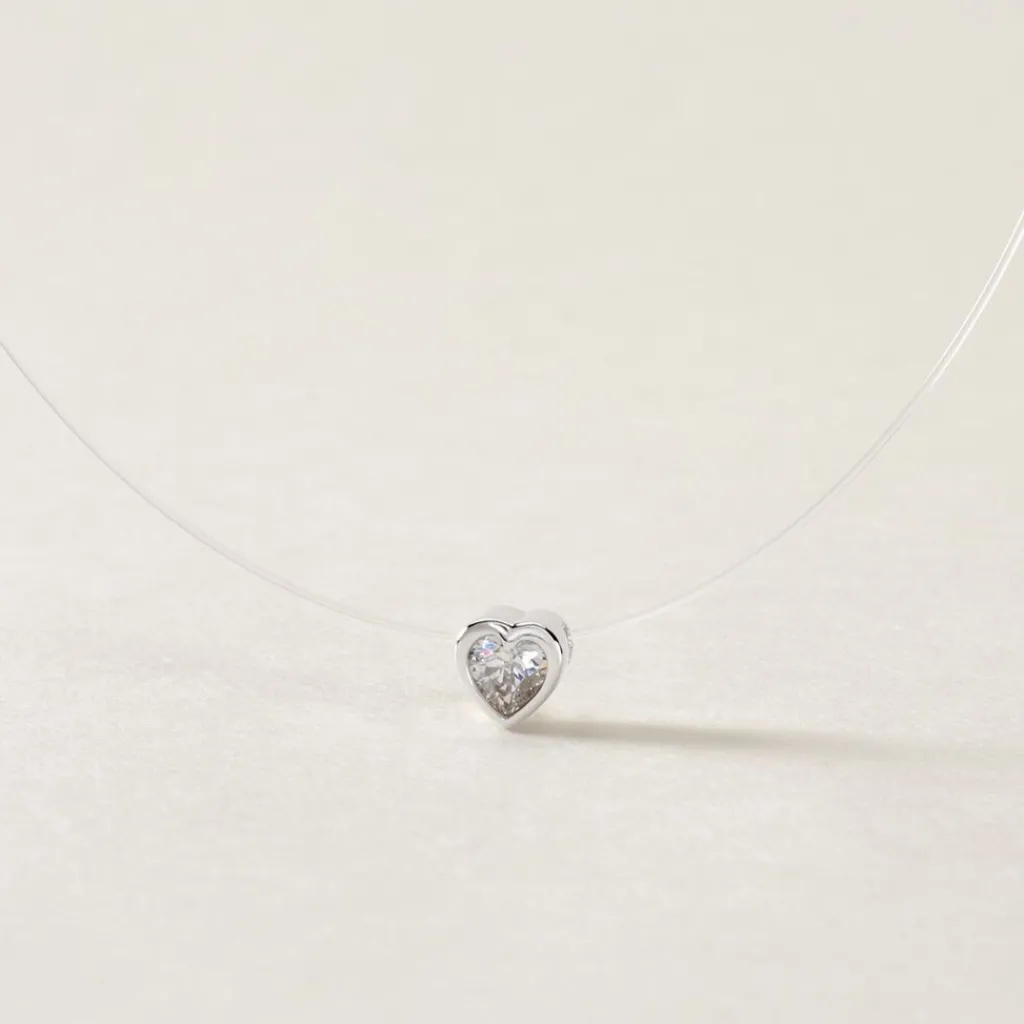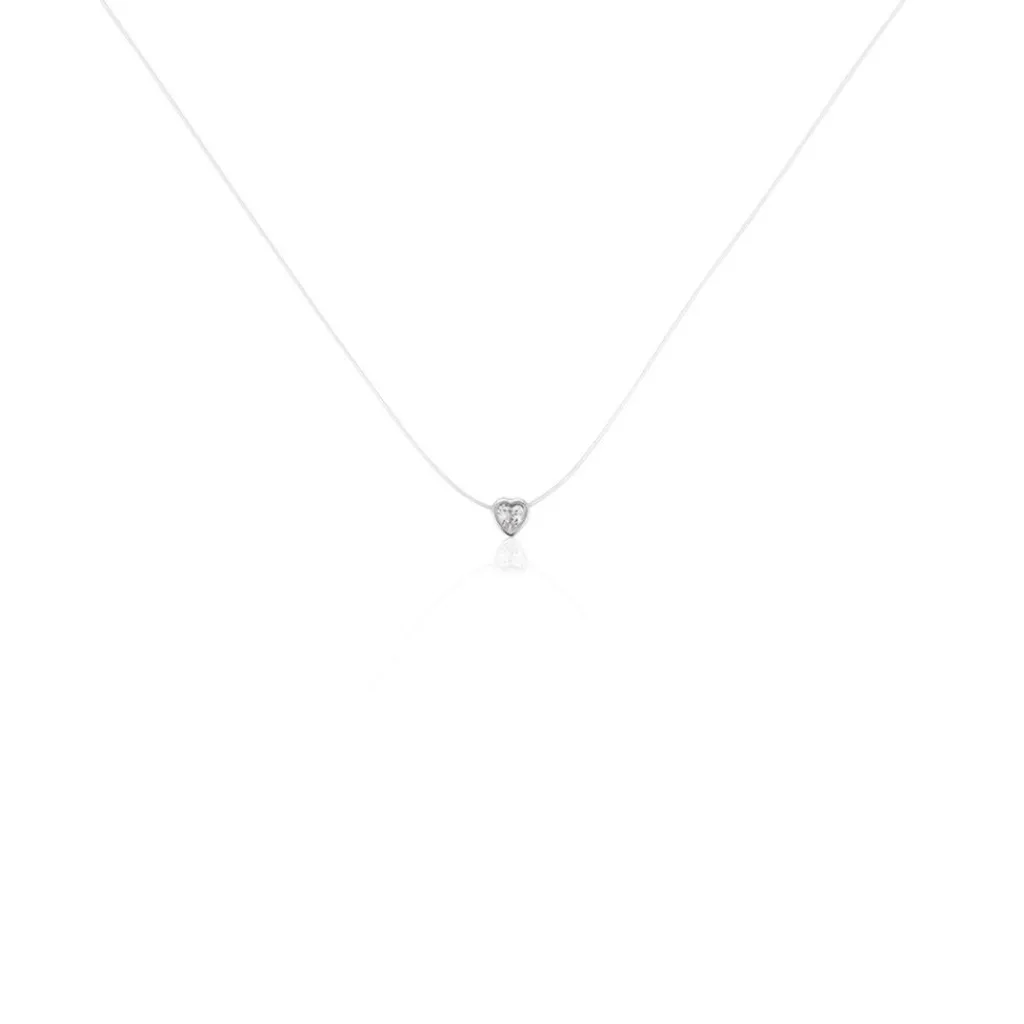 Collier Argent 925/1000 nylon Oxyde De Zirconium Forme C艙ur Serti Clos 4mm 42cm