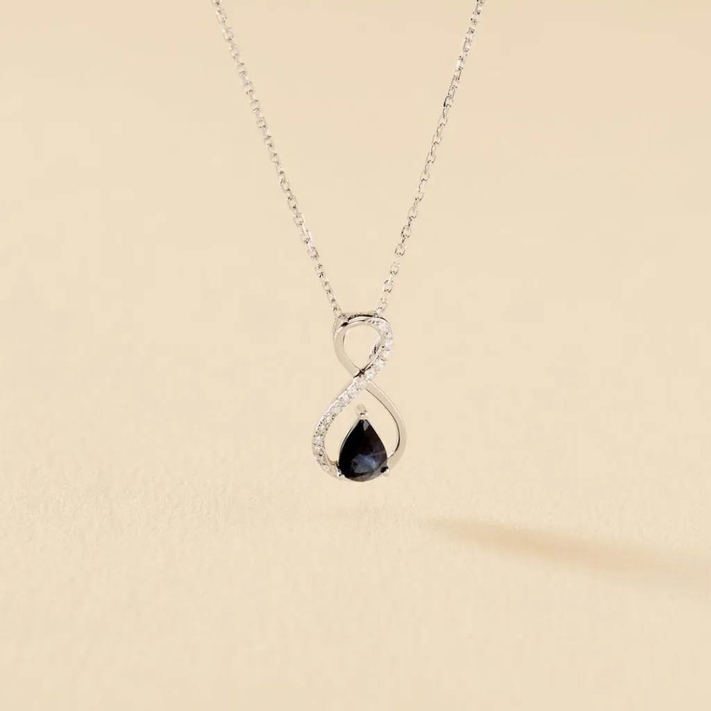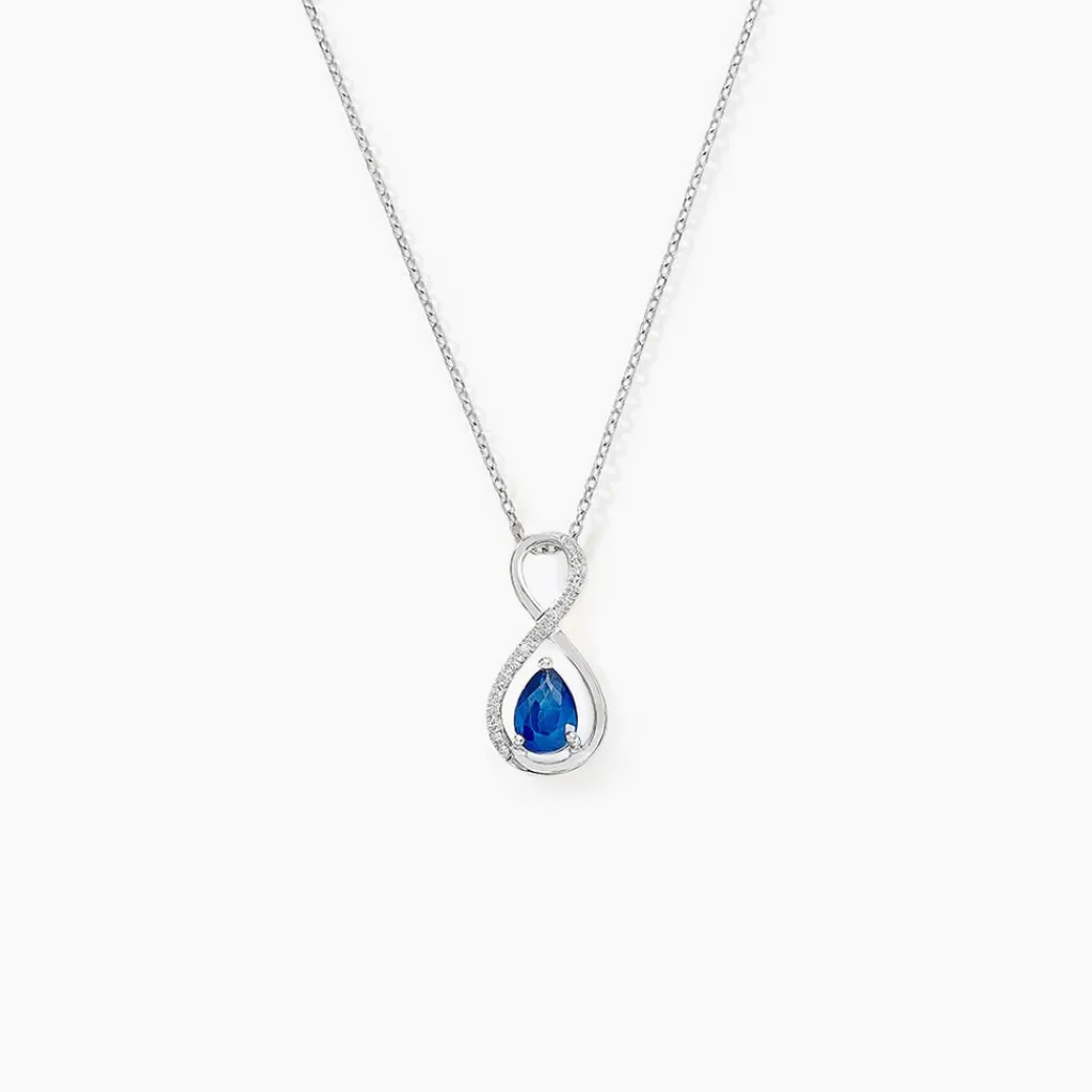 Collier Or Blanc 375/1000 Saphir Central Et Pavage Diamants 42cm