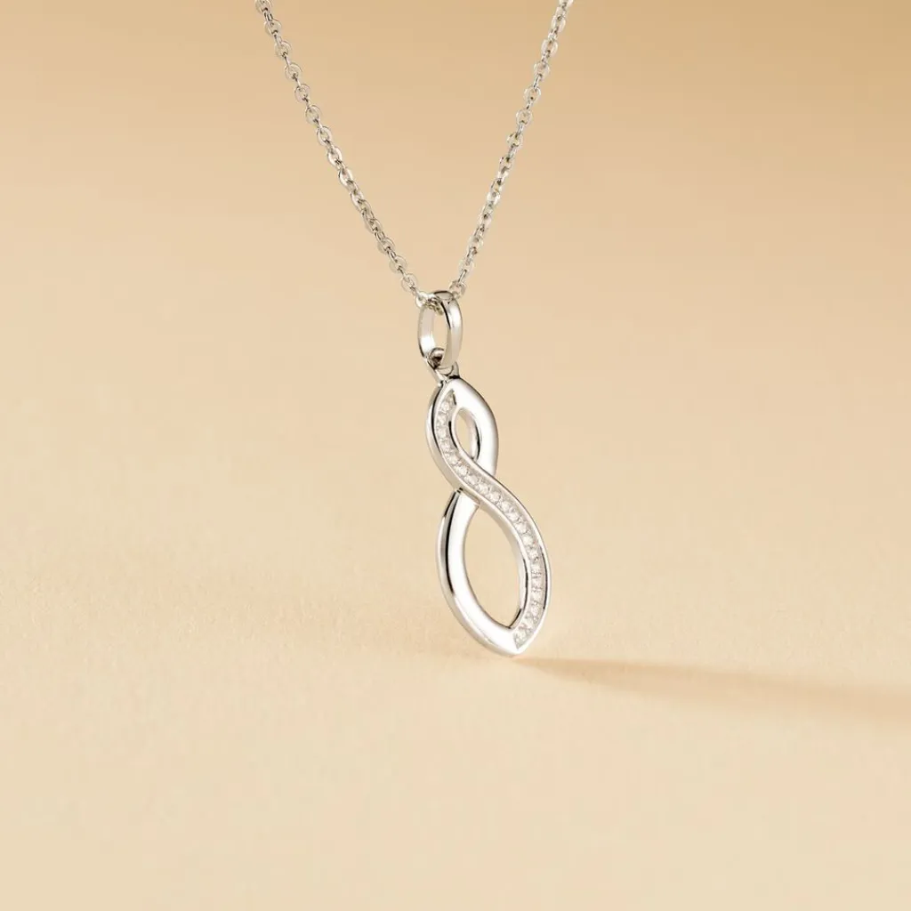 Collier Argent 925/1000 odile Pendentif Motif Inifini Oxydes De Zirconium Chaine Maille Forcat 42cm