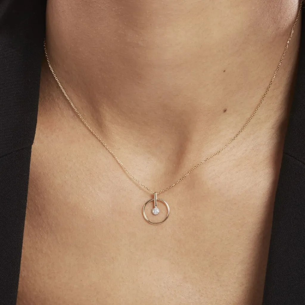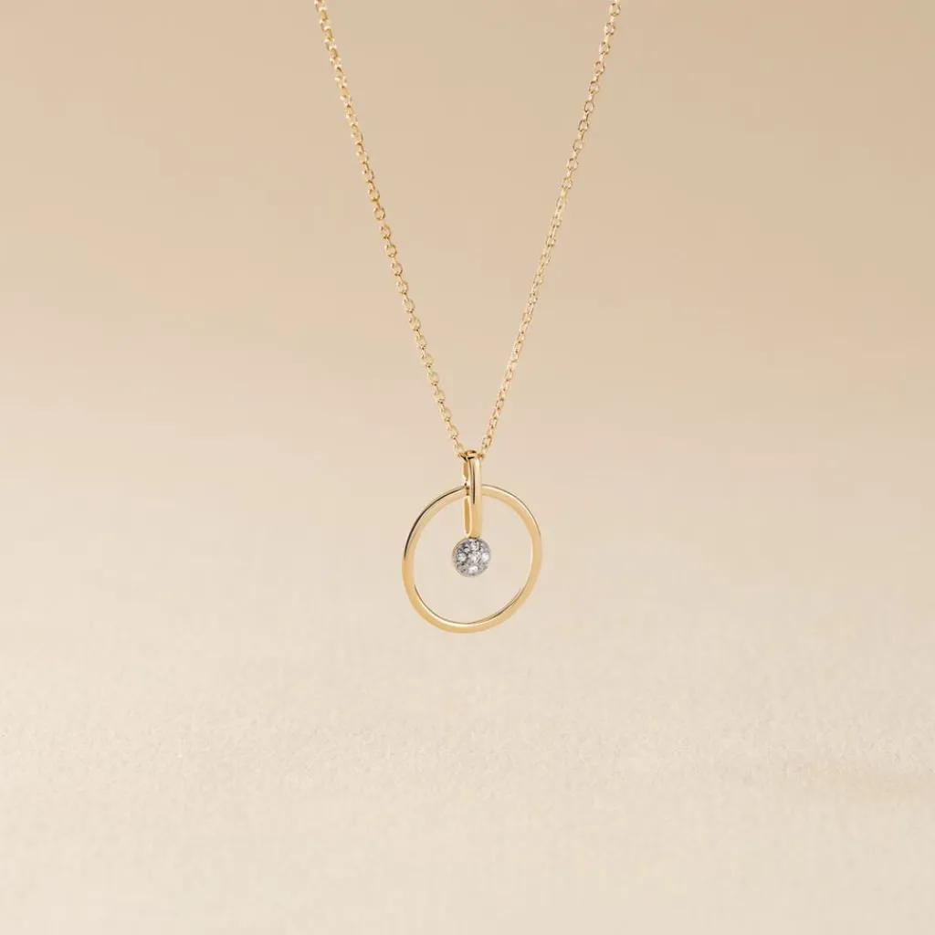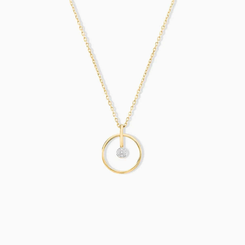 Collier Or Jaune 375/1000 Motif Cercle Rond Diamants Maille Forcat 40+2cm